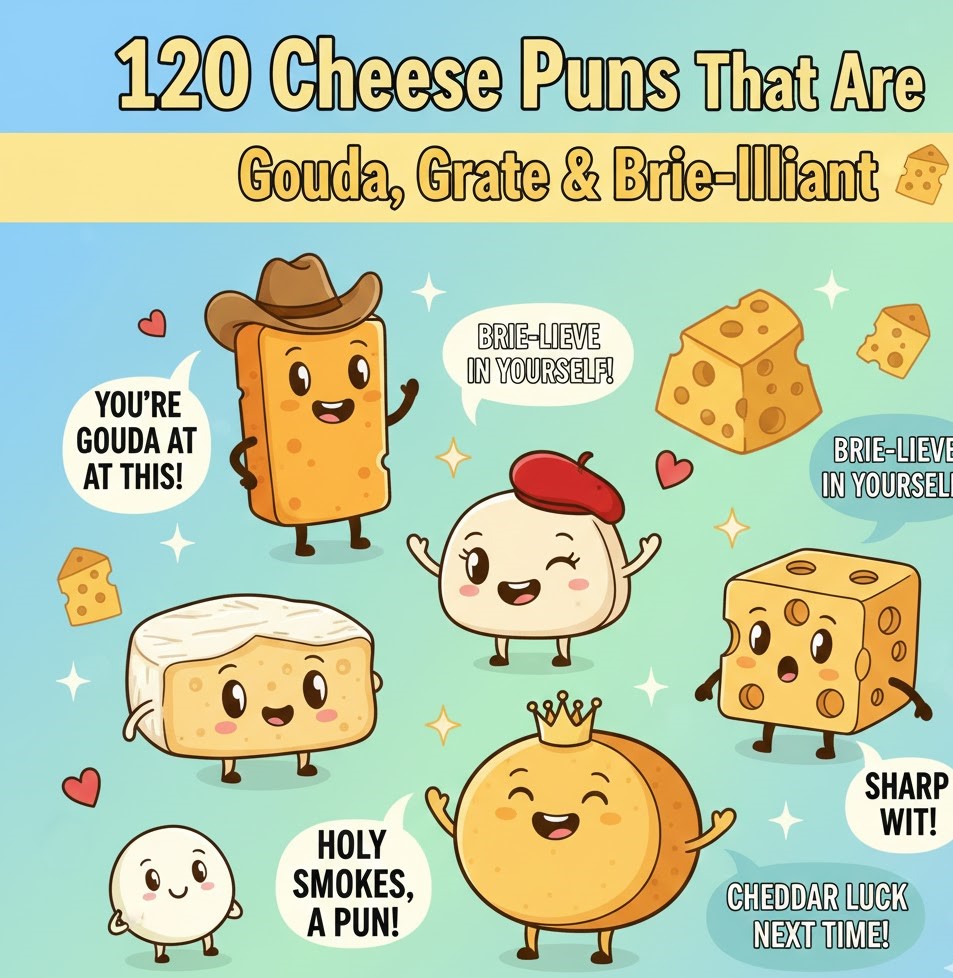 Welcome to GiggleGrubs where we serve up the funniest food puns, jokes, and playful wordplay for every craving. Milk puns never go out of style. They are simple, familiar, and ridiculously easy to love. Whether you want quick laughs, Instagram captions, kid-friendly jokes, or clever wordplay, this collection has you covered. Scroll, skim, sip, and […]