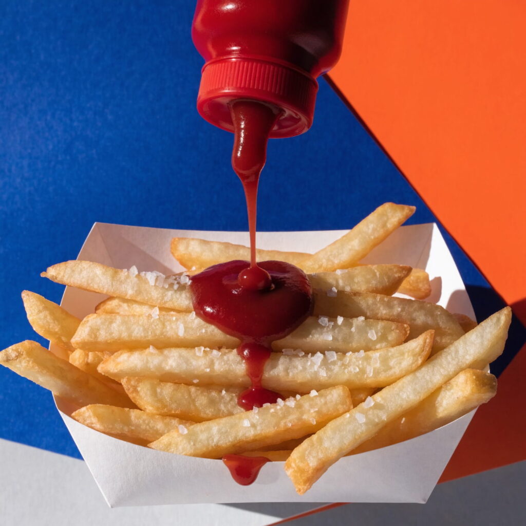 Mentions crispy, salty, ketchup, or deep fried vibes